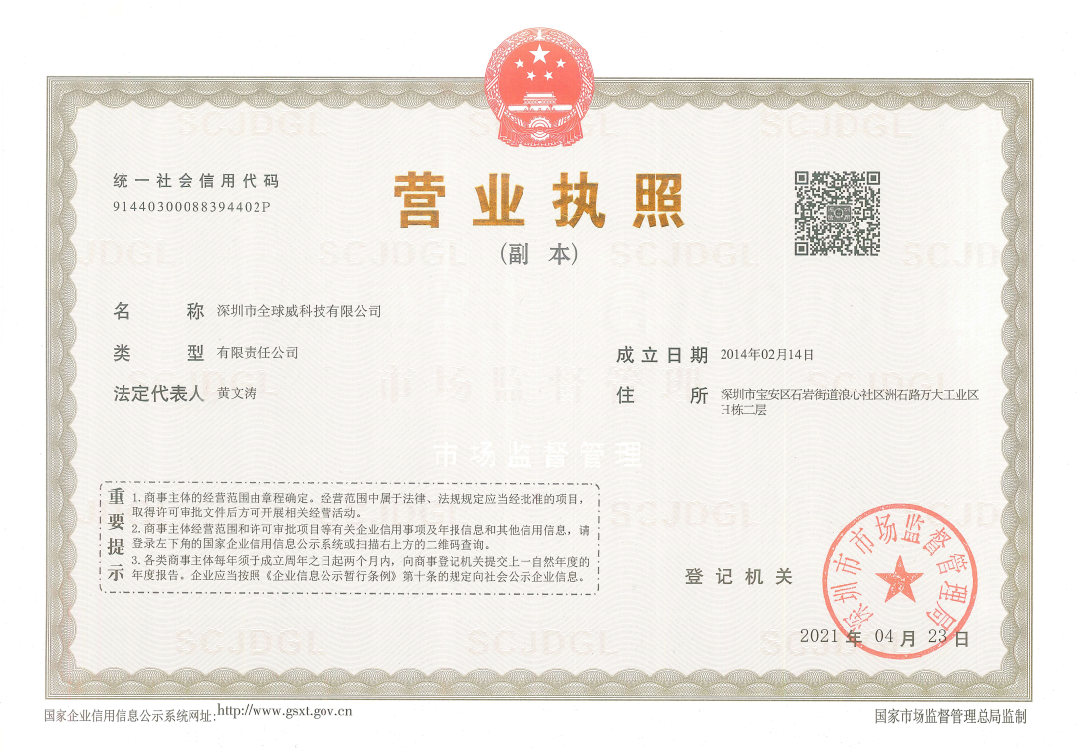 | 公司名稱 | 深圳市全球威科技有限公司 |